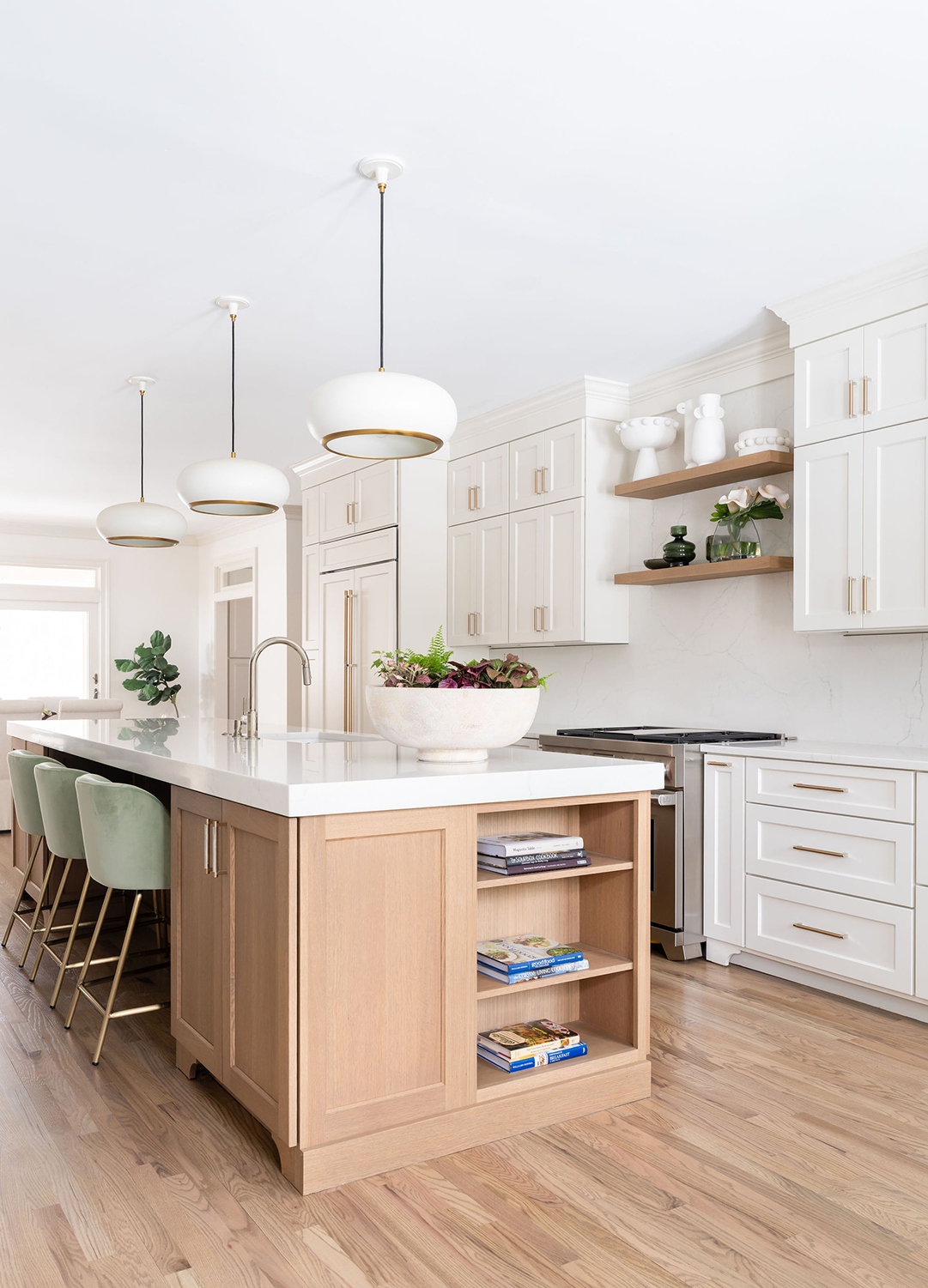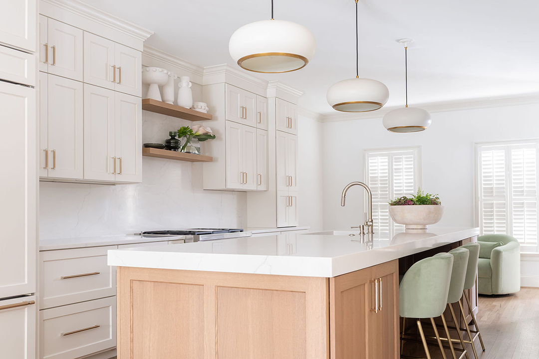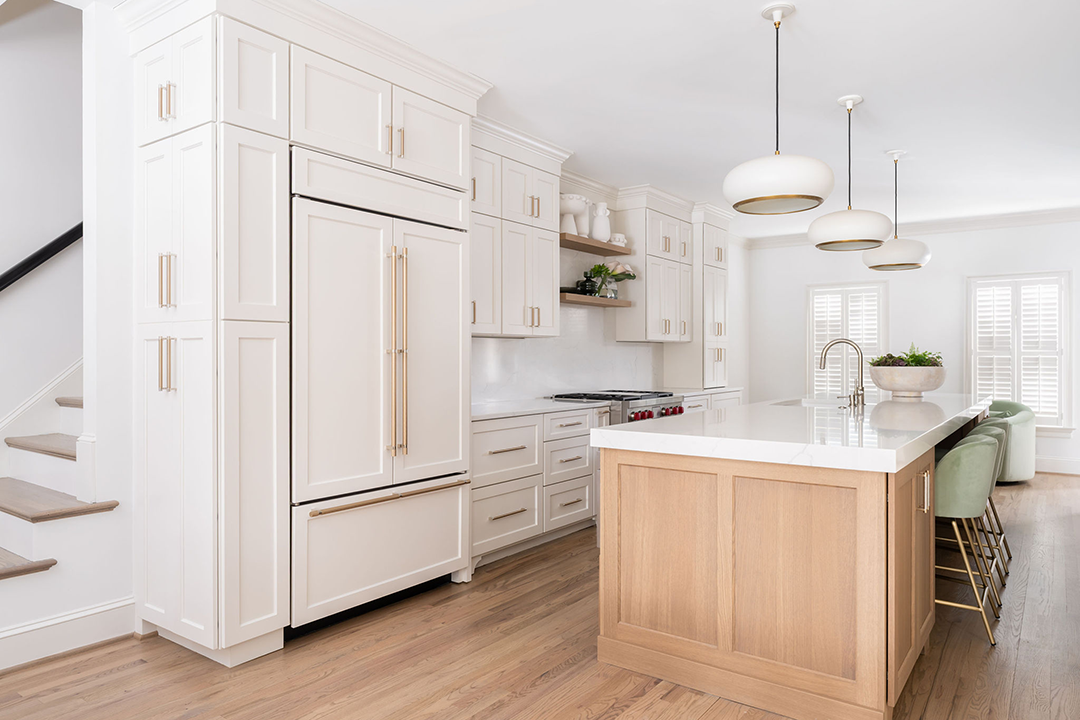 This dated kitchen and pantry were reimagined as a modern, light-filled oasis. With the client seeking a quiet and peaceful atmosphere, we began by removing a wall to expand the footprint and improve flow. An underused dining room was eliminated to prioritize function, while the butler’s pantry was completely reworked to be more efficient and intentional. The result is an airy, cohesive space that feels calm, open, and effortlessly modern.